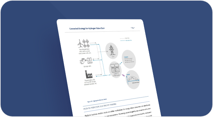 Connected Strategy for Hydrogen Value Chain ^ Top ^ 43 Figure 19 | Aggregator Business Model PEER-TO-PEER (P2P) ELECTRICITY TRADING Platform business models create an online marketplace for energy where consumers and distributed energy suppliers make peer-to-peer transactions. This energy can be bought by any consumer with whom there is a direct connection. The primary objective of a P2P market is to provide a trustworthy mechanism for prosumers to balance their preferences and requirements. An emerging innovation that facilitates P2P transactions is blockchain. P2P trading encourages more renewable energy distributed generation installations and increased local use of energy resources.
