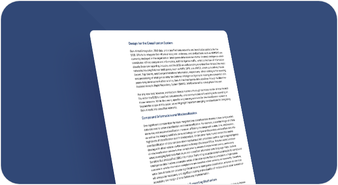 32 Design for the Classification System Gen-AI tool integration, SBU data, and classified data networks are inextricable subjects for the DOD. Efforts to integrate Gen-AI are already well underway, and chatbot tools such as NIPRGPT are currently deployed in the organization. Intelligence data takes two forms: finished intelligence which constitutes refined analysis and information, and intelligence traffic, which is the flow of information directly from raw reporting. Industry and the DOD are collaborating to embed Gen-AI tools into major networks housing finished intelligence, such as NIPR, SIPR, and JWICS, which cumulatively house Secret, Top Secret, and Compartmentalized Information, respectively. When looking at the sourcing and processing of intelligence data, the Defense Intelligence Agency is nearing the completion of a years-long development effort to bring Gen-AI into intelligence data pipelines through its Machine- Assisted Analytic Rapid Repository System (MARS). MARS entered its rollout phase this year. For any new tool, however, architecture should involve a thorough technical review of how the tool fits within the DOD’s classified data networks, and communicates with existing tools operating on those networks. While discussing specific engineering solutions for the classification system is beyond the scope of this paper, we will highlight important emerging considerations for integrating Gen-AI tools into classified networks. Compound Information and Misclassification One significant consideration for tools integrated into classified data streams is how compounded data can lead to under classification and overclassification. For example, a satellite image of a field alone may not require classification; however, affiliating the image with a date, time, and location, as well as the imaging satellite’s plane orbitology can compound disparately unclassified data into high levels of classification as a finished product. On the other hand, human errors that lead to overclassification of data can slow down key bureaucratic processes such as approving intelligence sharing with allied nations via the respective Foreign Disclosure Office. This two-sided problem of misclassification can be further complicated by models if implemented poorly, particularly when leveraging RAG tools that chunk non-classified information onto language maps, such as Sensitive But Unclassified (SBU) information. Performing accurate contextual analysis for compound intelligence data involves a complex series of decision-points that accumulate to a high-stakes outcome in which information compilations are classified either correctly or incorrectly. Therefore, while Gen-AI tools can provide significant value to intelligence classification, a human-in-the-loop will always be necessary, and significant testing and evaluation of models should occur to reach an acceptably low margin of error before any implementation. Preference Constraints as a Supporting Mechanism Today’s Gen-AI tools such as LLMs have built-in rule sets called preference constraints to impose limitations on what users can generate for output based on their prompts. Prompts that imply criminal or violent behavior, for example, with unconstrained preferences would cause the LLM to apply approximate retrieval and generate a response on its language map that would aid in potentially nefarious activity. Applying preference constraints—prompts that direct the LLM to retrieve certain word combinations—will trigger the LLM to generate an alternative response, typically stating that the model cannot support the request. Preference constraints, however, are not a perfect guard against data leaks and illicit responses because of the probabilistic nature of approximate retrieval. If a given model is trained on data that incorporated PII, classified information, or other sensitive information, it may base its responses on this data, regardless of whether it recites the information directly. In civilian uses of LLMs, nefarious actors already take advantage of this weakness through prompt manipulation, in which users deliberately adjust prompt language to avoid triggering preference constraints, while generating the desired output. Existing firewalls across NIPR, SIPR, and JWICs already compartmentalize information and restrict access to cleared personnel, so prompt manipulation is less of a concern Generative AI Adoption in the US Military