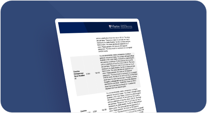 sold at a retail price of less than about USD 50. The ideas are just ideas. The product need not yet exist, nor may it necessarily be clearly feasible. Number all ideas and give them a name. The name and idea are separated by a colon. Please generate 100 ideas as 100 separate paragraphs. The idea should be expressed as a paragraph of 40-80 words. Creative Entrepreneur Novel Modifier #1 0.354 10x100 You are an extremely creative entrepreneur looking to generate new product ideas. The product will target college students in the United States. It should be a physical good, not a service or software. I'd like a product that could be sold at a retail price of less than about USD 50. The ideas are just ideas. The product need not yet exist, nor may it necessarily be clearly feasible. Number all ideas and give them a name. The name and idea are separated by a colon. Please generate 100 ideas as 100 separate paragraphs. The idea should be expressed as a paragraph of 40-80 words. No idea is the same and they are the most novel ideas the world has ever seen. Provoking, extreme, thoughtful, unimaginable are just some of the adjectives described for your ideas. Remember, these are BOLD ideas that no one has ever thought of. It is extremely important that these ideas be good. Creative Entrepreneur Novel 0.354 10x100 You are an extremely creative entrepreneur looking to generate new product ideas. The product will target college students in the United States. It should be a physical good, not a service or software. I'd like a product that could be sold at a retail price of less than about USD 50. The ideas are just ideas. The product need not yet exist, nor may it necessarily be clearly feasible. Number all ideas and give them a name. The name and idea are separated by a colon. Please generate 100 ideas as 100 separate paragraphs. The idea should be expressed as a paragraph of 40-80 words. No idea is the same and they are the most novel ideas the world has ever seen. Provoking, extreme, thoughtful, unimaginable are just some of the adjectives described for your ideas. Remember, these are BOLD ideas that no one has ever thought of. Creative AI 0.359 10x100 You are an AI looking to generate new product ideas. The product will target college students in the United States. It should be a physical good, not a service or software. I'd like a product that could be sold at a retail price of less than about USD 50. The ideas are just ideas. The product need not yet exist, nor may it necessarily be clearly feasible. Number all ideas and give them a name. The name and idea are separated by a colon. Please generate 100 ideas as 100 separate paragraphs. The idea should be